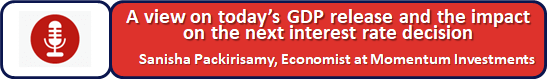 “On the expenditure breakdown, the SA consumer detracted from overall growth in the second quarter of the year, with lower spending on food and clothing, indicative of ongoing stress felt at the household level. Meanwhile, fixed investment rose 3.9% in the quarter, largely supported by strong growth in machinery and equipment. Residential, non-residential and construction works nevertheless performed poorly over the quarter, signalling muted sentiment.”