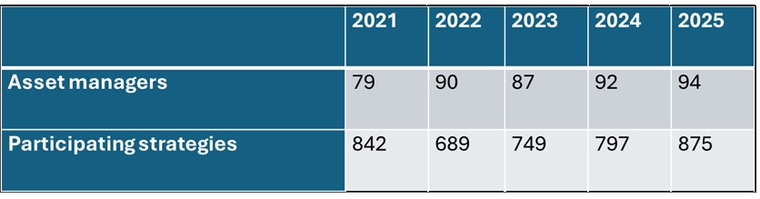 Participation continued to broaden across categories. Notably, strategies participating in the BEE survey recorded the most significant year-on-year increase in 2025 versus 2024, growing by 17%.