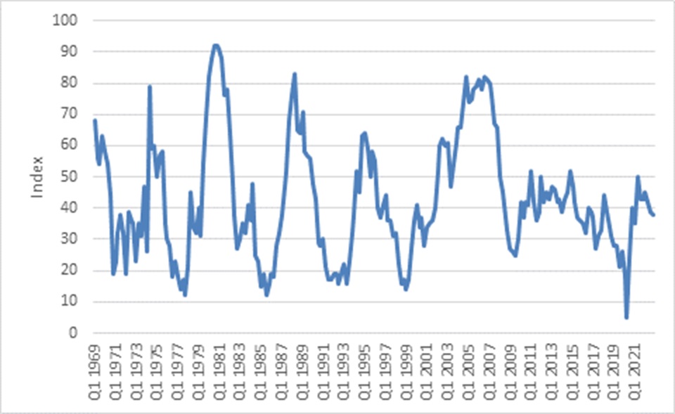For instance, listed companies report regular sales numbers from different sectors, and we can compare that with the official data. We also have survey data from the likes of the Bureau for Economic Research. Its RMB Business Confidence Index has been measuring swings in sentiment in key cyclical industries since 1970. It fell further from 38 in the fourth quarter of 2022 to 36 in the first quarter. Any reading below 50 suggests respondents are on balance negative about business conditions. Strikingly, the index has been stuck below 50 for most of the past decade. In contrast to the boom-bust cycles that are clearly evident before 2010, the period since can only be described as treading water. Many businesses chose to expand offshore in this time, and few had success.