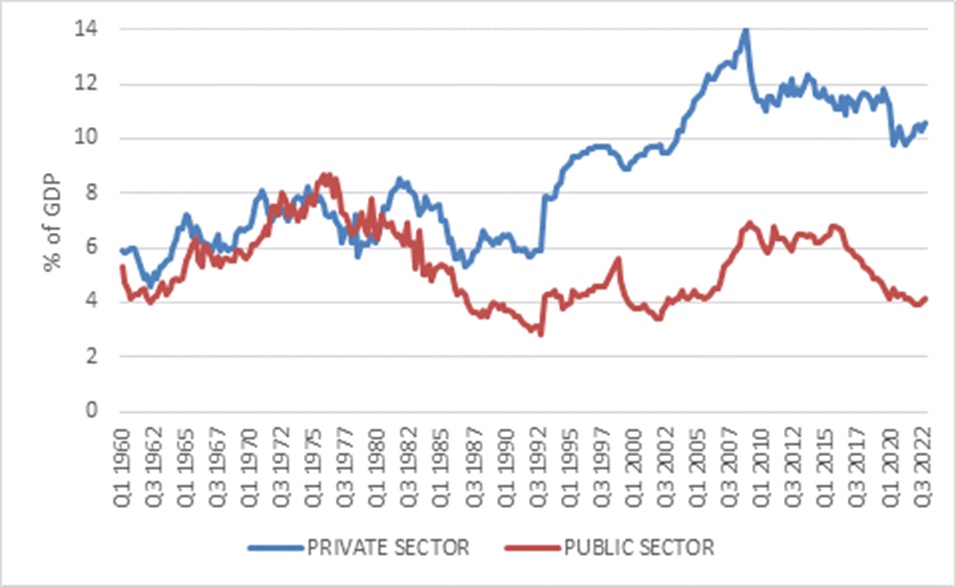 This is not easy or costless. Spending cutbacks impact frontline service delivery, indirectly in the case of the violent public nurses strike underway. It also puts pressure on capex as noted above, which can further hurt long-term growth rates. Breaking this vicious cycle is crucial, and the solution is to crowd in private sector expertise, capital, and risk appetite.