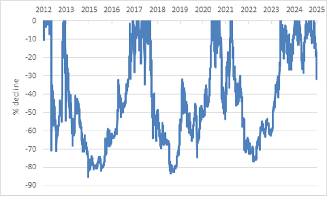 Chart 1: Bitcoin maximum drawdown