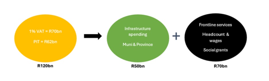 Figure 1: Budget’s proposed tax hike to raise R120bn; R50bn for infrastructure and R70bn for consumption