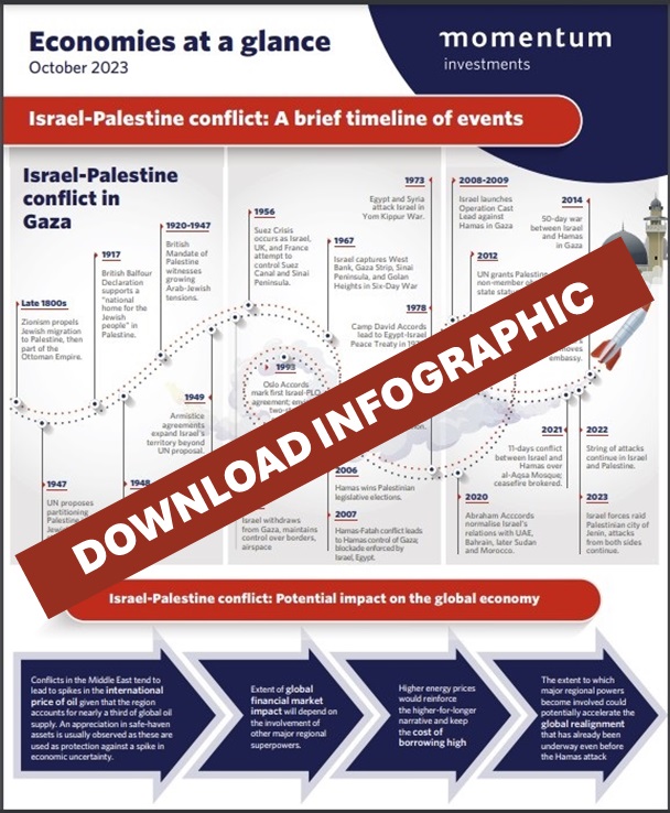 SA’s response to the conflict between Israel and Hamas has raised concerns about potential economic ramifications and the country’s entanglement in a geopolitical flurry, reminiscent of the situation earlier this year concerning the Russia-Ukraine conflict. Political divisions within the country have emerged, with the ruling ANC attributing the crisis to Israeli policies, while the EFF endorsed Hamas’ use of force. Conversely, the main opposition, the DA, firmly condemned what they perceived as an ‘unprovoked attack’ by Hamas. SBG Securities notes that President Cyril Ramaphosa’s consistently measured statements on the conflict have nevertheless played a role in mitigating foreign policy related risks. They do however highlight the significance of SA’s relations with Iran, particularly in light of Minister of International Relations and Cooperation, Naledi Pandor’s recent visit to the country and the invitation extended to Iran to join the BRICS grouping at this year’s summit. SBG Securities warns this could become a more prominent concern in SA’s relationship with the US should the Middle East conflict escalate, especially in the event of increased hostilities. Similar to the approach taken with the Ukraine conflict, SA politicians have framed the recent escalation between Hamas and Israel within the broader context of their perspectives on global dynamics. It is becoming increasingly apparent that SA’s approach to foreign affairs will play an even larger role in determining investment and growth outcomes for the country