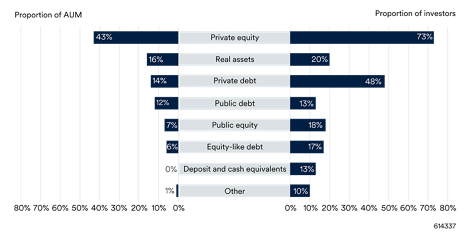GIIN’s report states that 43% of all impact AUM is allocated to private equity specifically, making this by far the largest single asset class for impact investing. A substantial 73% of survey respondents have at least some of their impact AUM in private equity.