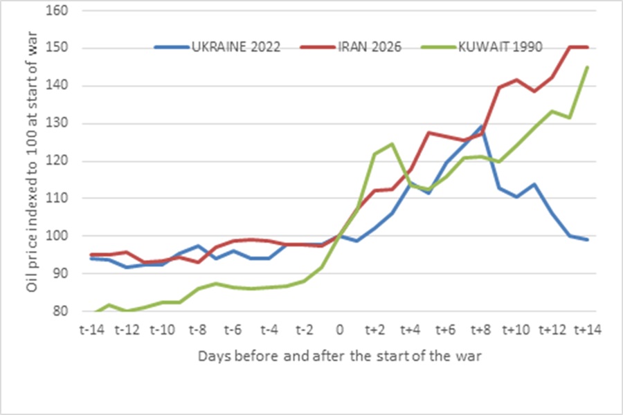 Chart 1: Brent oil price movements in times of war, $