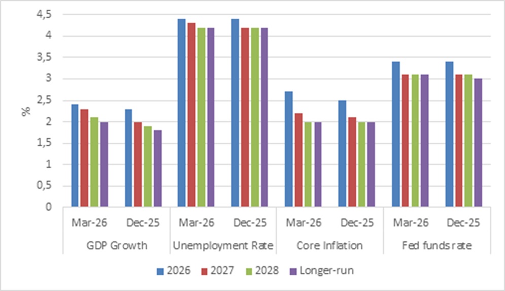 Chart 2: Summary of US economic projections (dot plot)