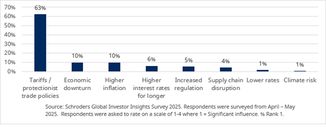 These tariffs were selected by nearly two-thirds of respondents (63%) as the biggest macroeconomic concern – more than six times the next highest perceived risk. This trade uncertainty is likely to have fuelled investors’ strong focus on ‘portfolio resilience’ over the next 18 months – which was the overwhelming top priority for portfolios, having been selected by more than half of all surveyed (55%).