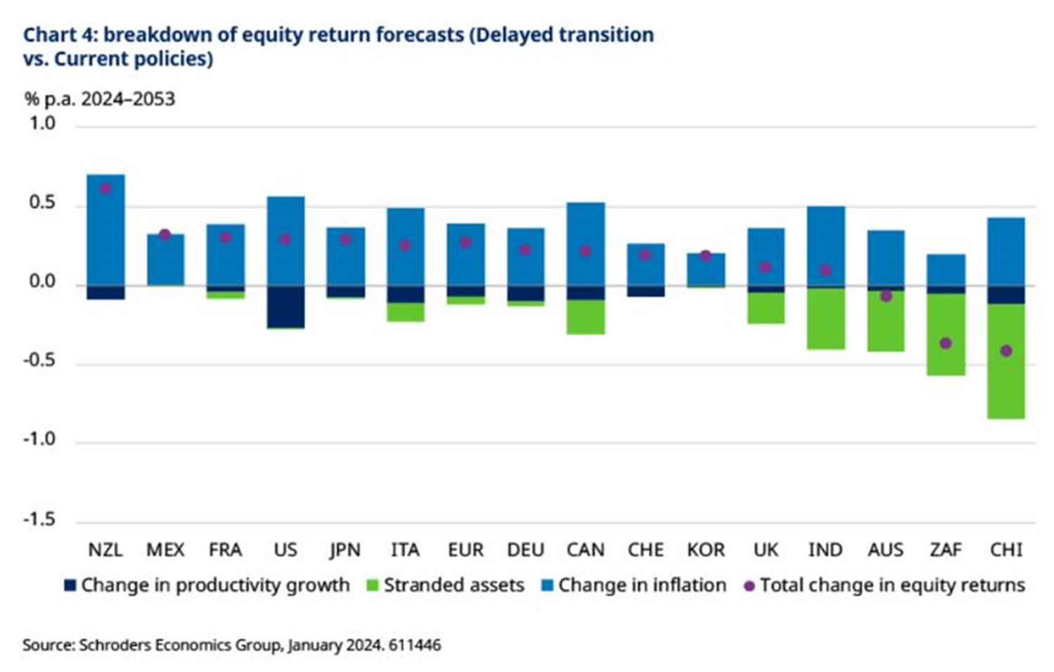 At asset class level, we expect a delayed transition will generally mean less growth and lower corporate earnings, productivity and so equity returns would be lower than otherwise.