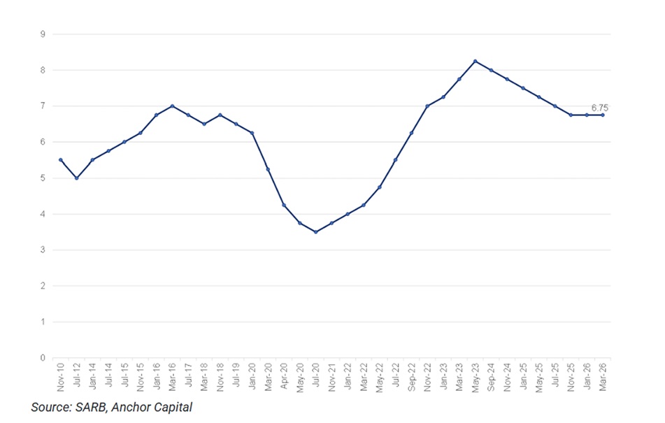 Against this backdrop, the SARB’s MPC opted to hold the repo rate at 6.75% (prime at 10.25%), with a unanimous decision among the six members of the MPC reflecting the heightened uncertainty. The policy bias has shifted: risks are no longer skewed toward easing but toward a delay in rate cuts and, in more extreme scenarios, potential tightening. The SARB has also revised its headline inflation forecast for 2026 upward to 3.7% from January’s 3.3% forecast. For 2027 and 2028, it now expects a 3.3% and 3.0% inflation rate, respectively.