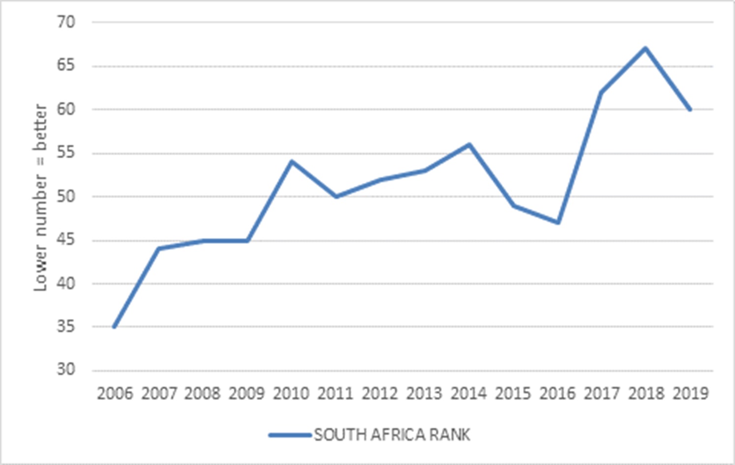 Sadly, South Africa’s rank has declined over the years. In 2006 it was as high as 35. While Godongwana and company can emphasise important recent economic reforms, sceptical investors will point out that these changes have yet to arrest a long-term deterioration in competitiveness.