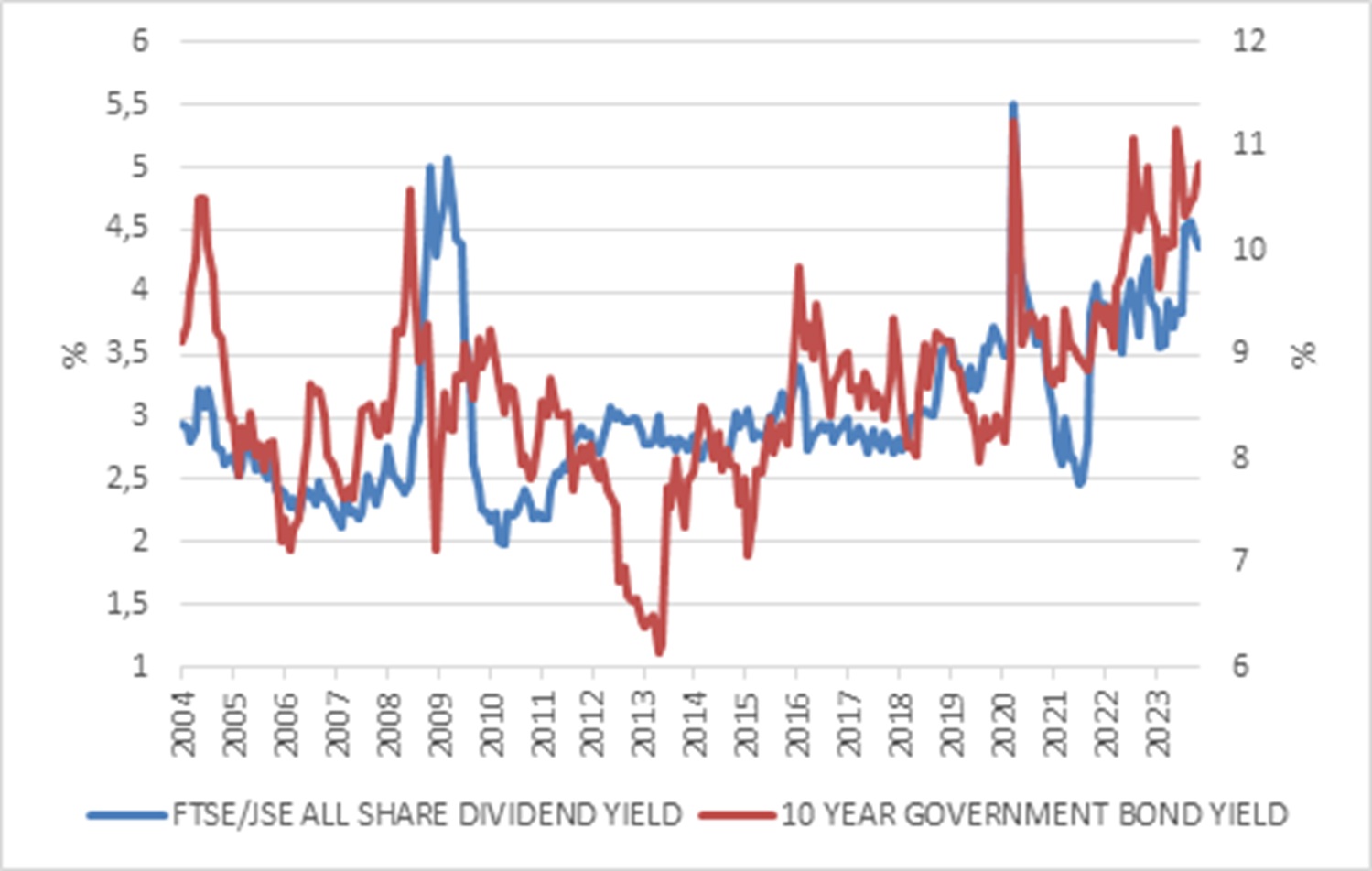 Chart 4: South African bond and equity valuations