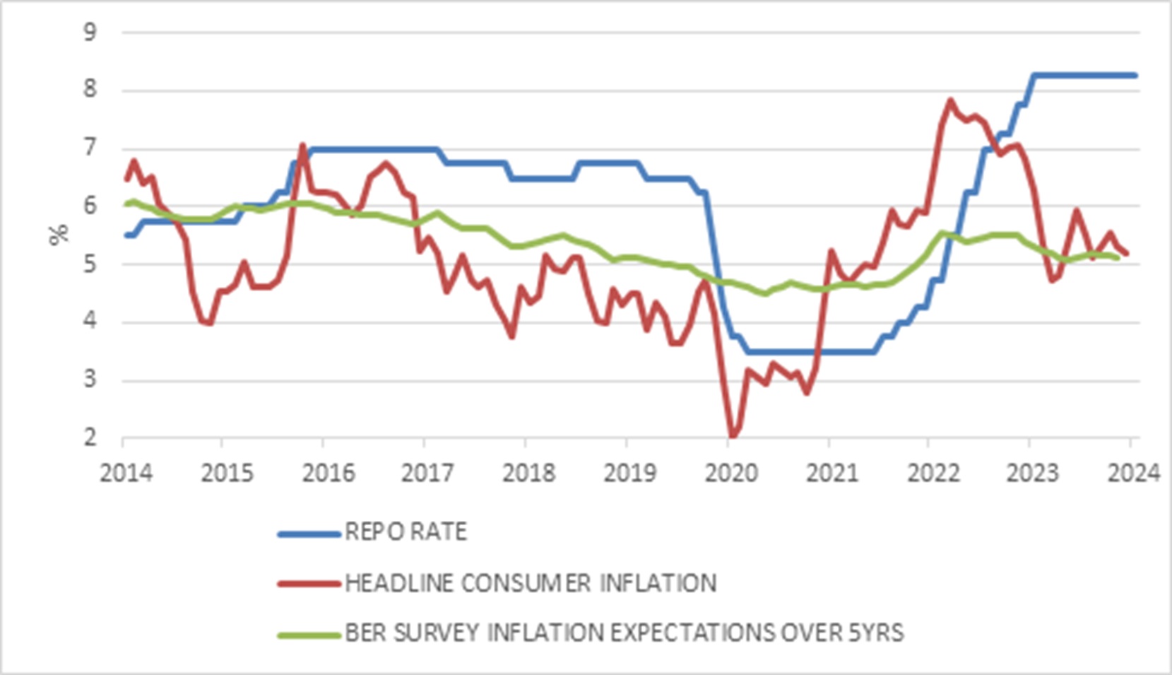Chart 4: South African interest rates and inflation