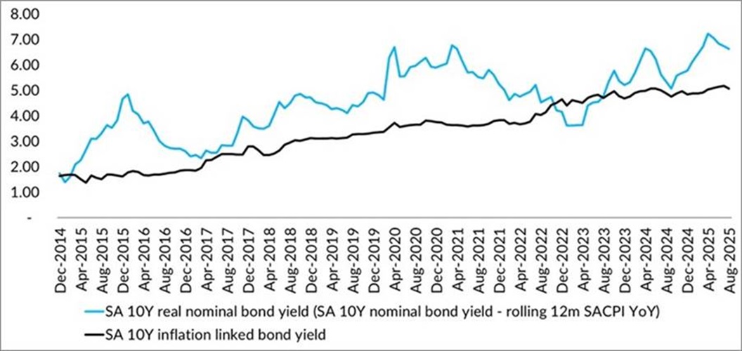 Today, the 10-year yield is above 9% with current inflation at around 3.3%, and 5-year Bureau of Economic Research (BER) inflation expectations at 3.6%. While yields on 10-year bonds have retreated from highs associated with election uncertainty last year, the real yields on offer today are still attractive considering how much inflation expectations have moderated. For a low-equity funds, the portfolio contribution of an asset delivering a predictable 5% real return is incredibly valuable.