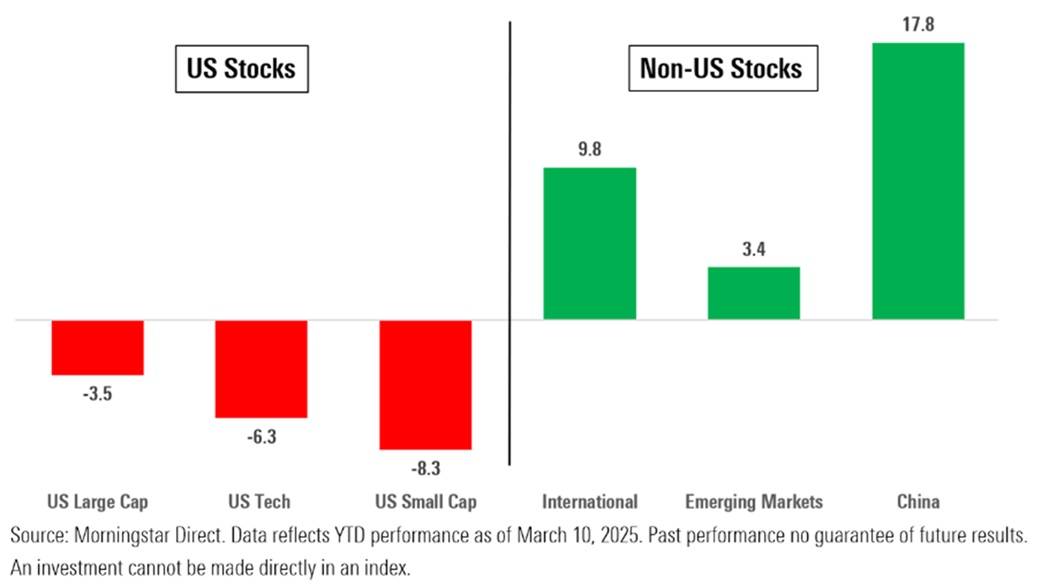 2025 started off on an interesting, somewhat different note than most investors anticipated. There are signs of a stock market correction, growth stocks are getting beaten up, bonds are resuming their role, recession worries resurfacing, and international stocks are outperforming.