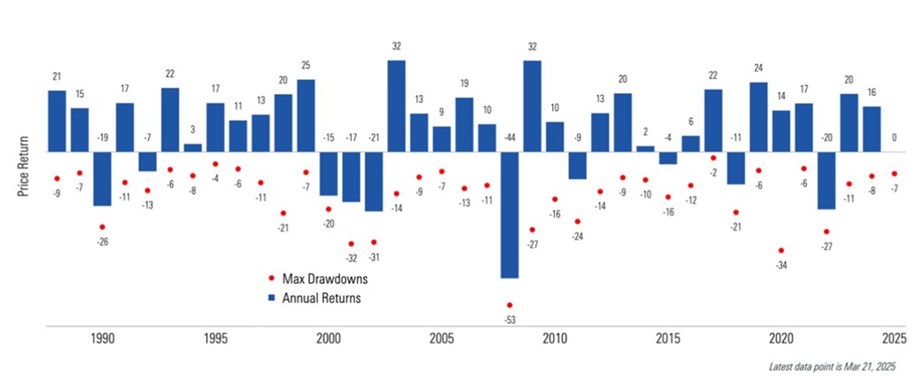 Market declines are inevitable, even if their timing and causes are unpredictable. While the current turmoil might feel unsettling, it is important to remember that market corrections are a normal part of the financial landscape. This recent pullback is largely driven by declining valuation multiples, not just external factors like the tariff tantrum.