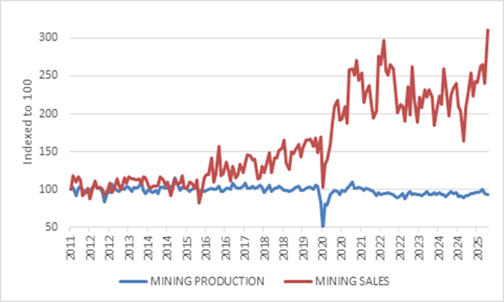 Stats SA’s mining data tells a mixed story. The December 2025 production numbers point to a negative final quarter, but longer-term there is no trend. Production levels have not grown over the past 15 years. On the other hand, mining sales have jumped thanks to elevated precious metals prices. This is good for the trade balance, the fiscal balance and domestic financial markets. But for the country to truly benefit from higher prices, volumes should also rise.