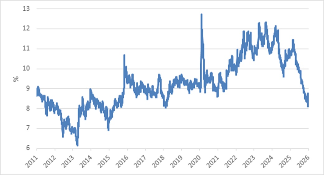The 2025 Medium Term Budget Policy Statement (MTBPS) projected that gross government debt would stabilise at 77.9% of GDP in the 2025/26 financial year. The Budget is likely to confirm that this indeed happened, which would make it the first time since 2009 that the ratio did not increase. It is too soon to declare victory, of course, but on current trends the debt ratio should continue to gradually decline in the years ahead. The mining tax windfall from the precious metals boom will support this decline, though Treasury is likely to be conservative in how it includes this in its projections. After all, no-one really knows where the gold and platinum price is headed. But it does imply that no near-term tax increases are likely.